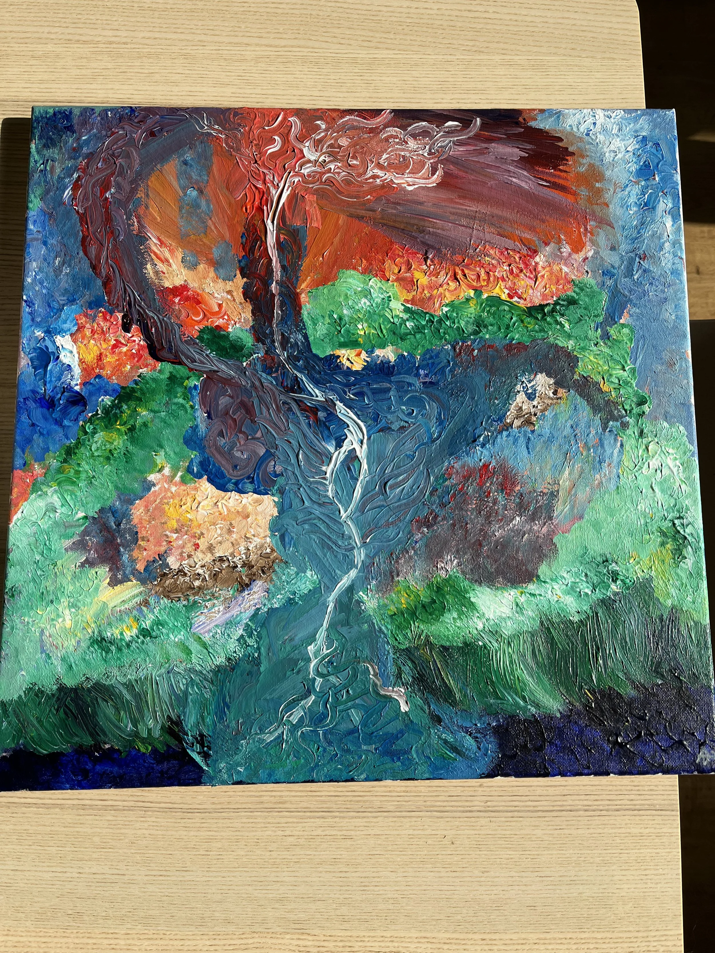 The creator in the highest realm, painting from trance states that keep him in direct communication with the ultimate life force.